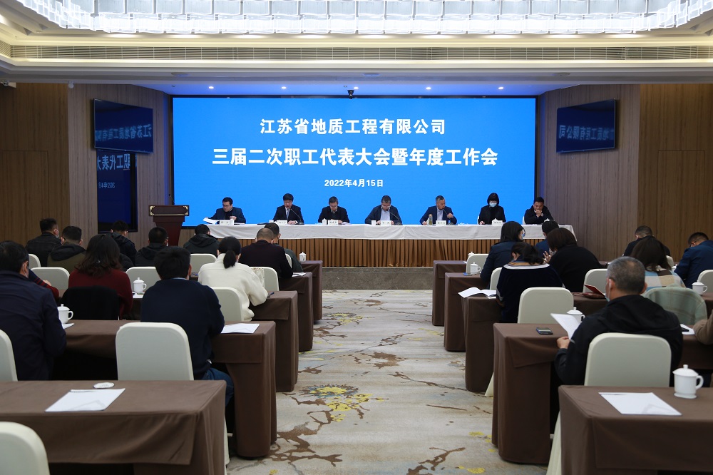 4月15日,苏地公司三届二次职工代表大会暨年度工作会议在宁召开。会议传达了省局年度总结会议暨党风廉政建设会议精神,听取并审议通过了总经理杨民做的题为《守初心、强信心、 铸决心—奋力推动高质量发展行稳致远》工作报告,总结了公司2021年的各项工作,部署了2022年工作计划。会议表彰了公司2021年度先进集体和个人,听取并审议通过了公司财务及工会工作报告,表决通过了《职工子女医药费报销制度》、《休假制度》和《员工绩效考核办法》等制度的修订案。公司党委书记黄夕川主持会议,公司领导班子、职工代表及列席代表共计39人参加会议。